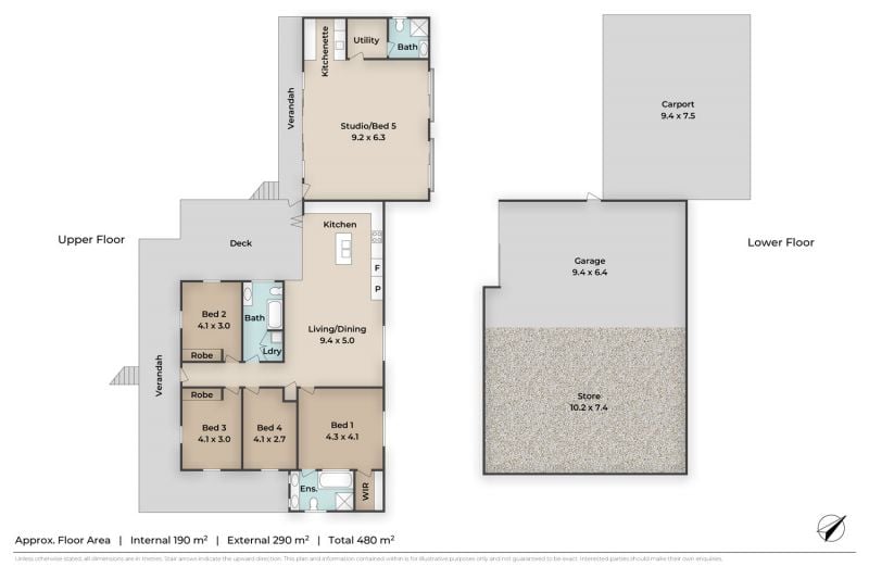 * Separate, large self contained studio/guest room offering an abundance of light and airflow