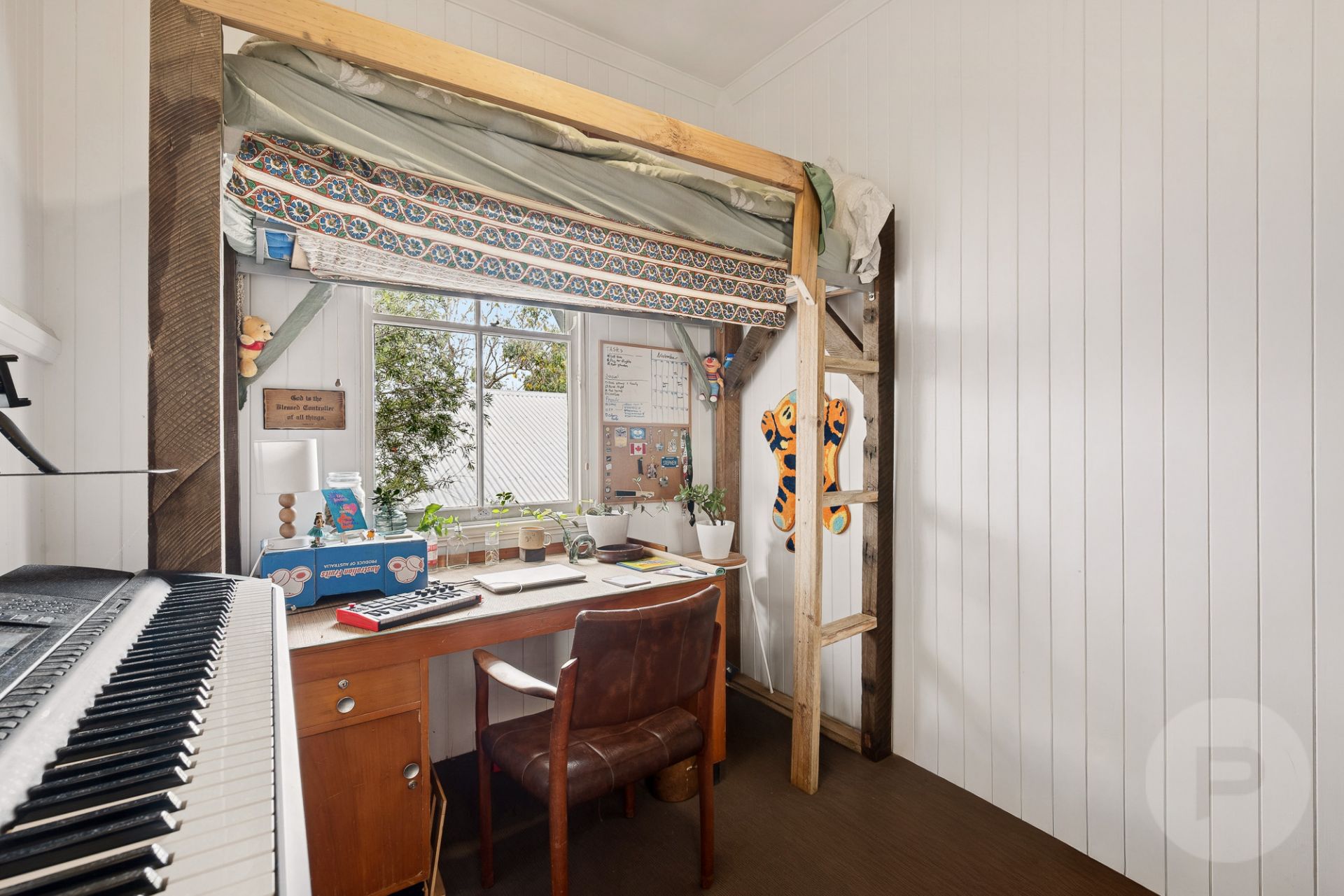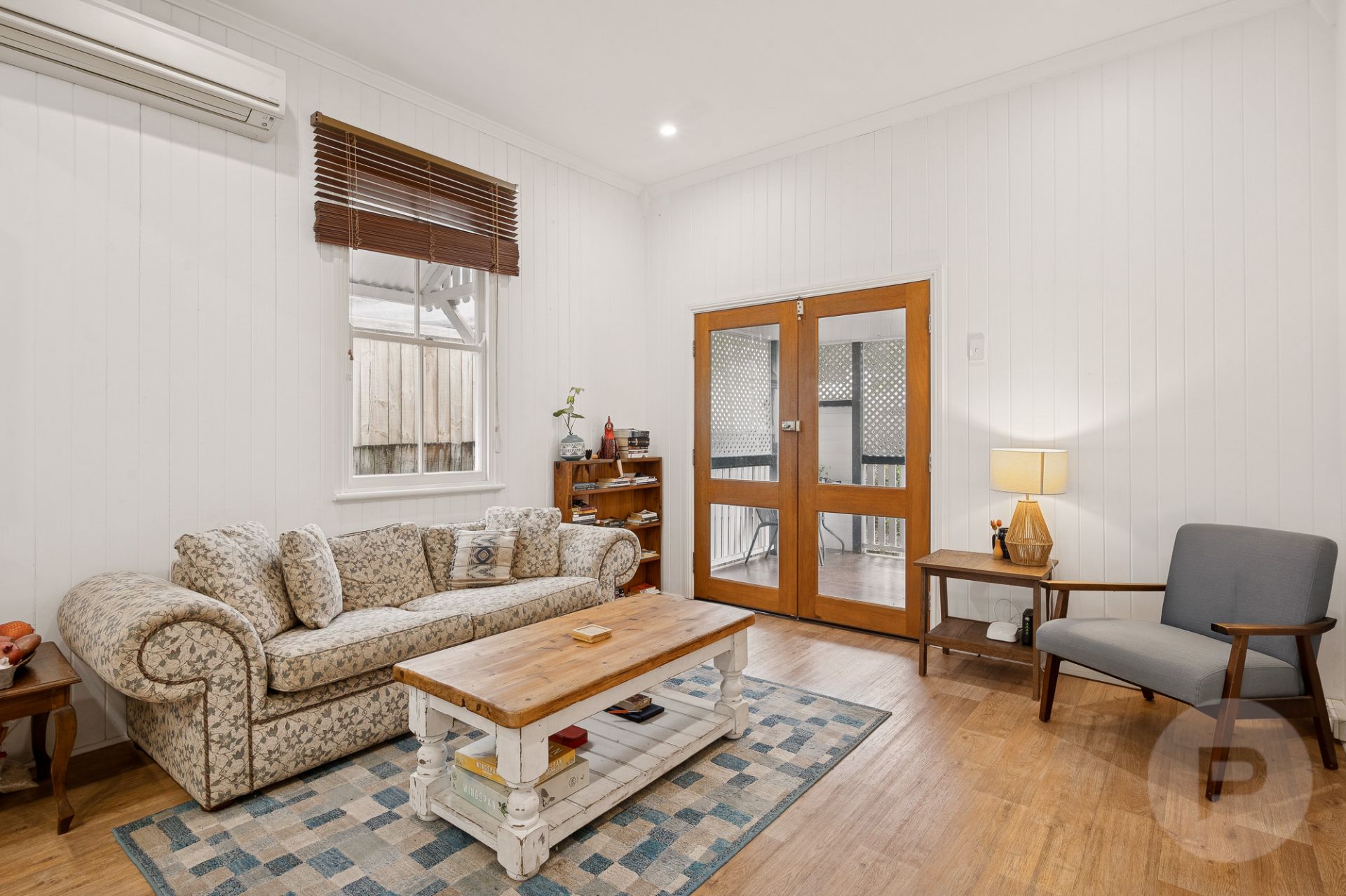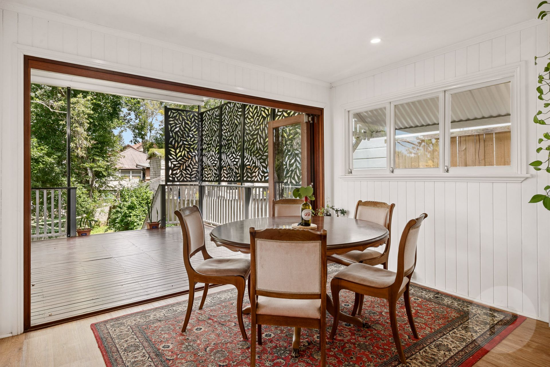 * Light-filled open-plan living, dining and kitchen with high ceilings and VJ walls